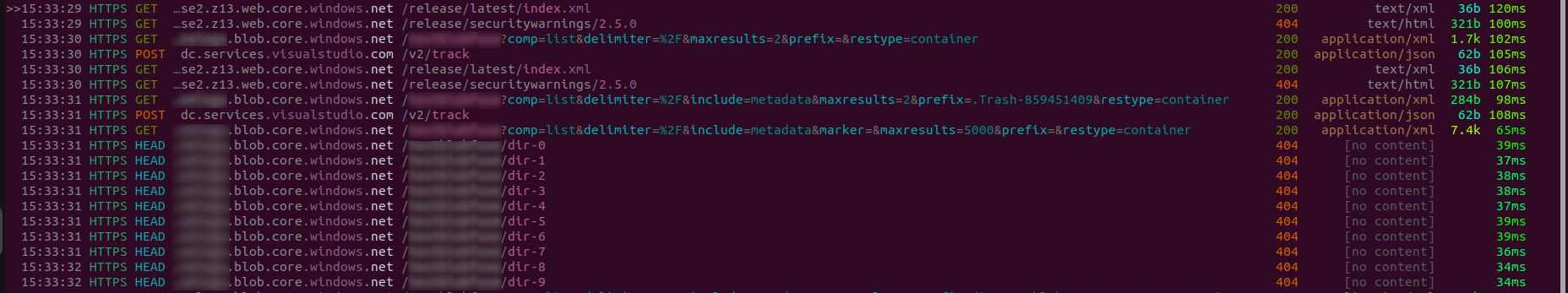 As shown in the image, blobfuse2 also issues several HTTP HEAD requests, but only to the virtual directories. All of these requests return 404 Not Found