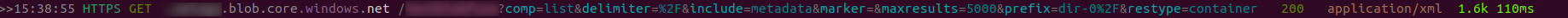 call (not visible in the screenshot but observable in the mitmproxy UI), the virtual directories are returned with a metadata field <BlobPrefix><Name>