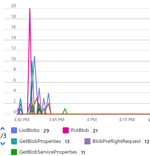 call, at least from the granularity of this graph. Remember that this is a test container with only 10 blobs and 10 virtual directories, so imagine what would happen in a production container with thousands of blobs and directories.